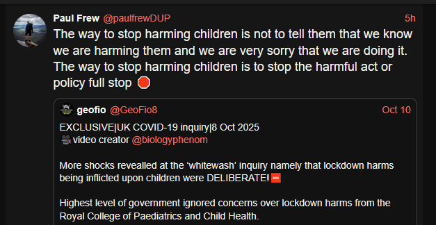 ‘‘What was being done DELIBERATELY to children and young people, KNOWINGLY and WANTINGLY recognising all of the harm that it (lockdown) was doing and there is a whole list of indirect harms that were done.’’