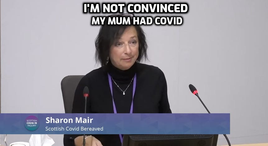 Sharon Mair (a former BBC employee) from the Scottish COVID Bereaved Group who questions her mothers cause of death as COVID.