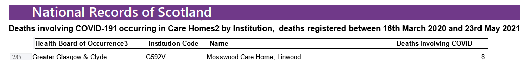 Sharons mother was in a care home due to suffering from dementia which had been progrssive since 2014. She became a resident at Mosswood home since 2016 and sadly passed away on 26 April 2020 from ‘suspected COVID’, a mere 6 weeks into lockdown. One of 8 deaths at Mosswood ‘involving’ the disease the first 15 months of the pandemic (for which data is made available).